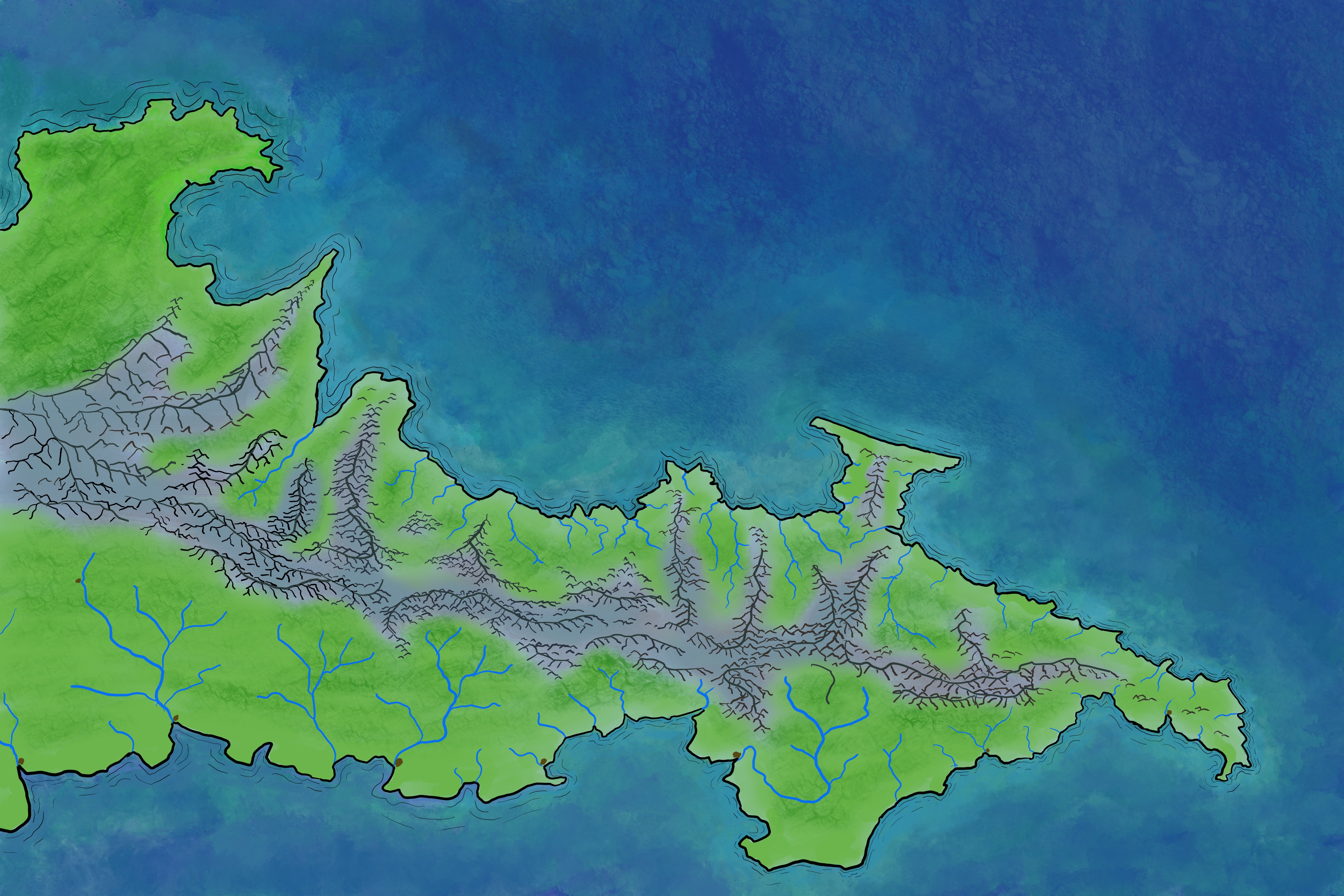 However, the ridge of mountains that form the spine of this peninsula are a very difficult passage in most places, and the passes are not well-maintained, while the lowland connection of the north coast has good roads into Quumla. As such the land has as much or more connection to Quumla as it does to Mataga... and yet it offers allegiance to neither.