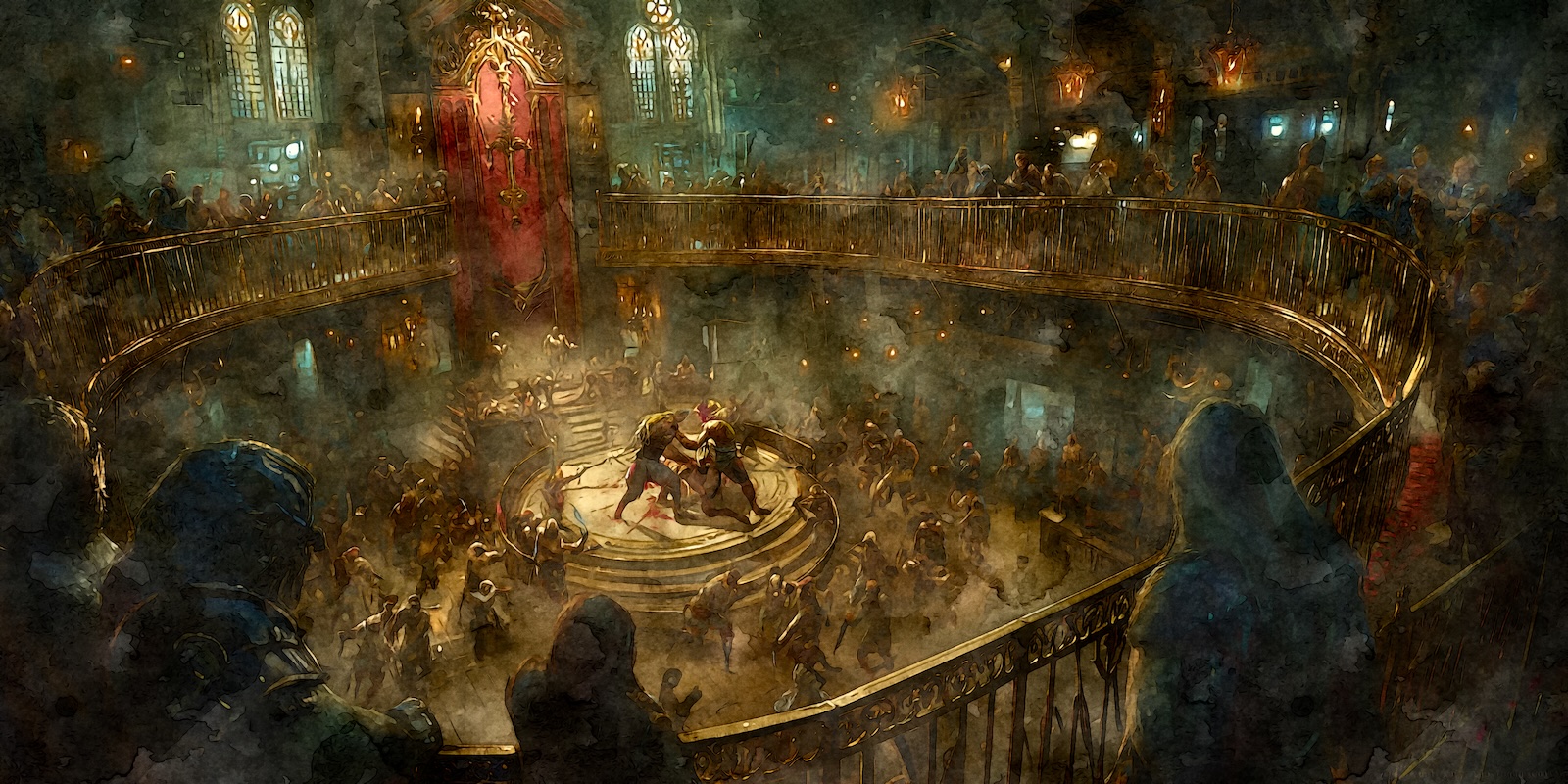 Lord Kandota, Master MerchantIn the old days, fights were to the death, but that would make this a very expensive pastime, even for the richest of guild merchants. Death and dismemberment still happen, but the fight goes until the Pitmaster rings the gong, which he does based on his judgment of victory.